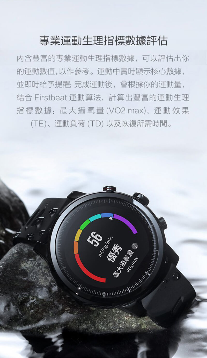 運動中實時顯示核心數據,並即時給予堤惺;完成運動後,會根據妳的運動量,結合 Firstbeat 運動算法,計算出豐富的運動生理指標數據:最大攝氧量(VO2max)、運動效果(TE)、運動負荷(TD)以及恢復所儒時間。