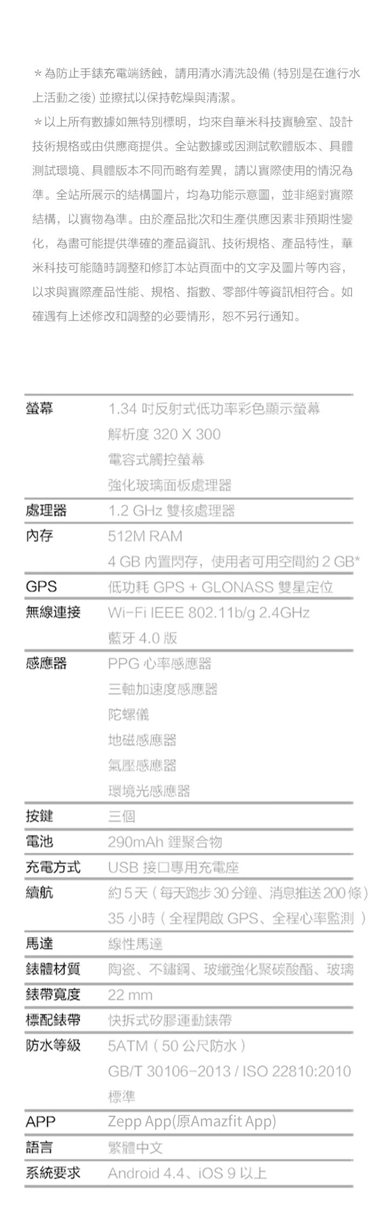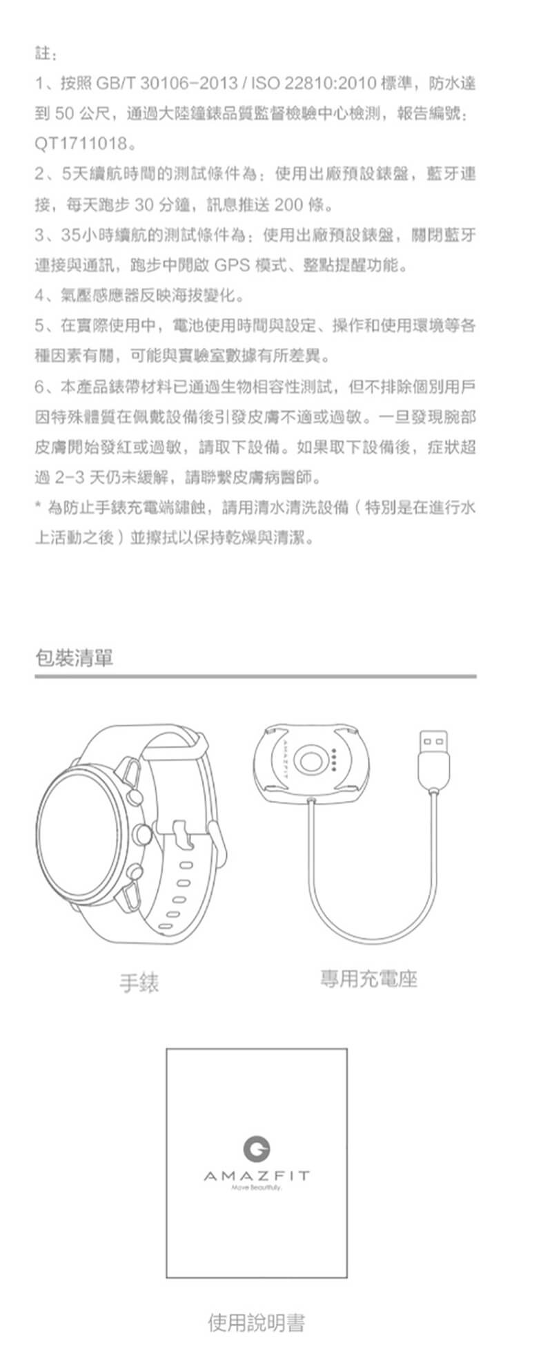 6、本産品錶帶材料已通過生物相容性測試,但不排除個別使用者因特殊體質在佩戴設備後引發皮膚不適或過敏。一旦發現腕部皮膚開始發紅或過敏,請取下設備。如果取下設備後,症狀超過 2-3 天仍未緩解,請聯繫皮膚科醫師。