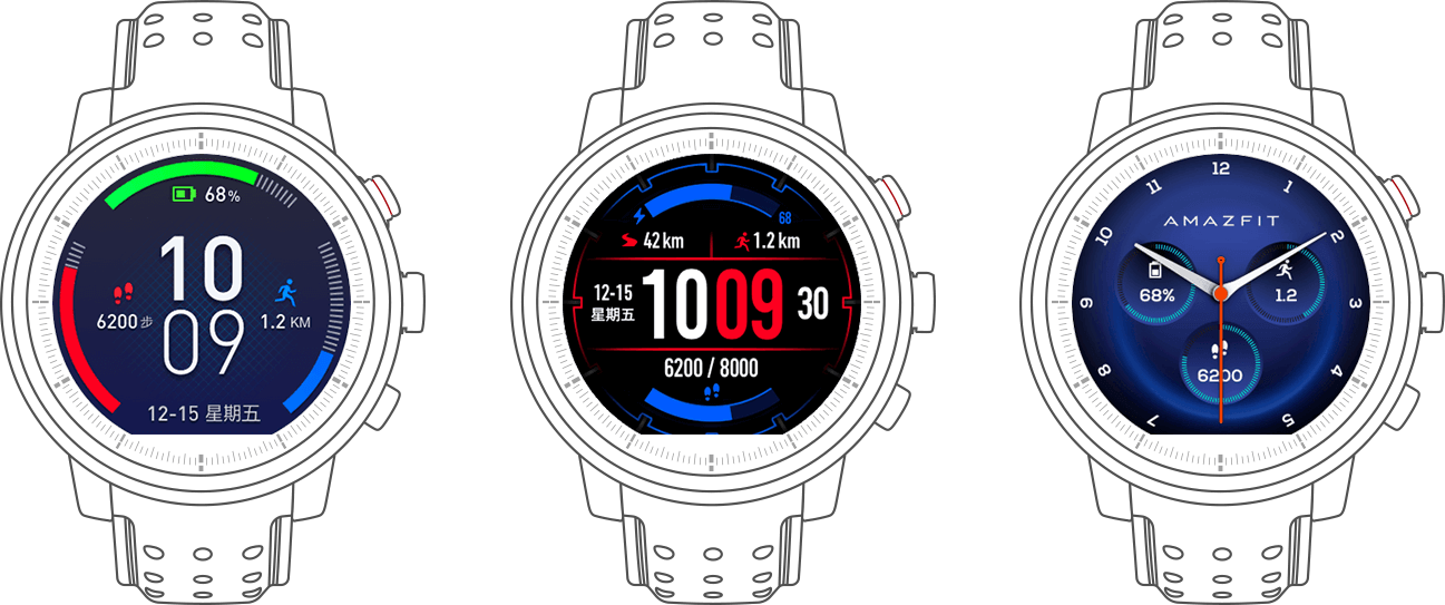 手錶內建多款訂製錶盤:經典的金屬三眼指針、充滿未來感的機甲世界、動感十足的運動行頭還可以設定自己喜愛的照片作錶盤背景,只需要在手錶或 APP 上動動手指,即可輕鬆切換。